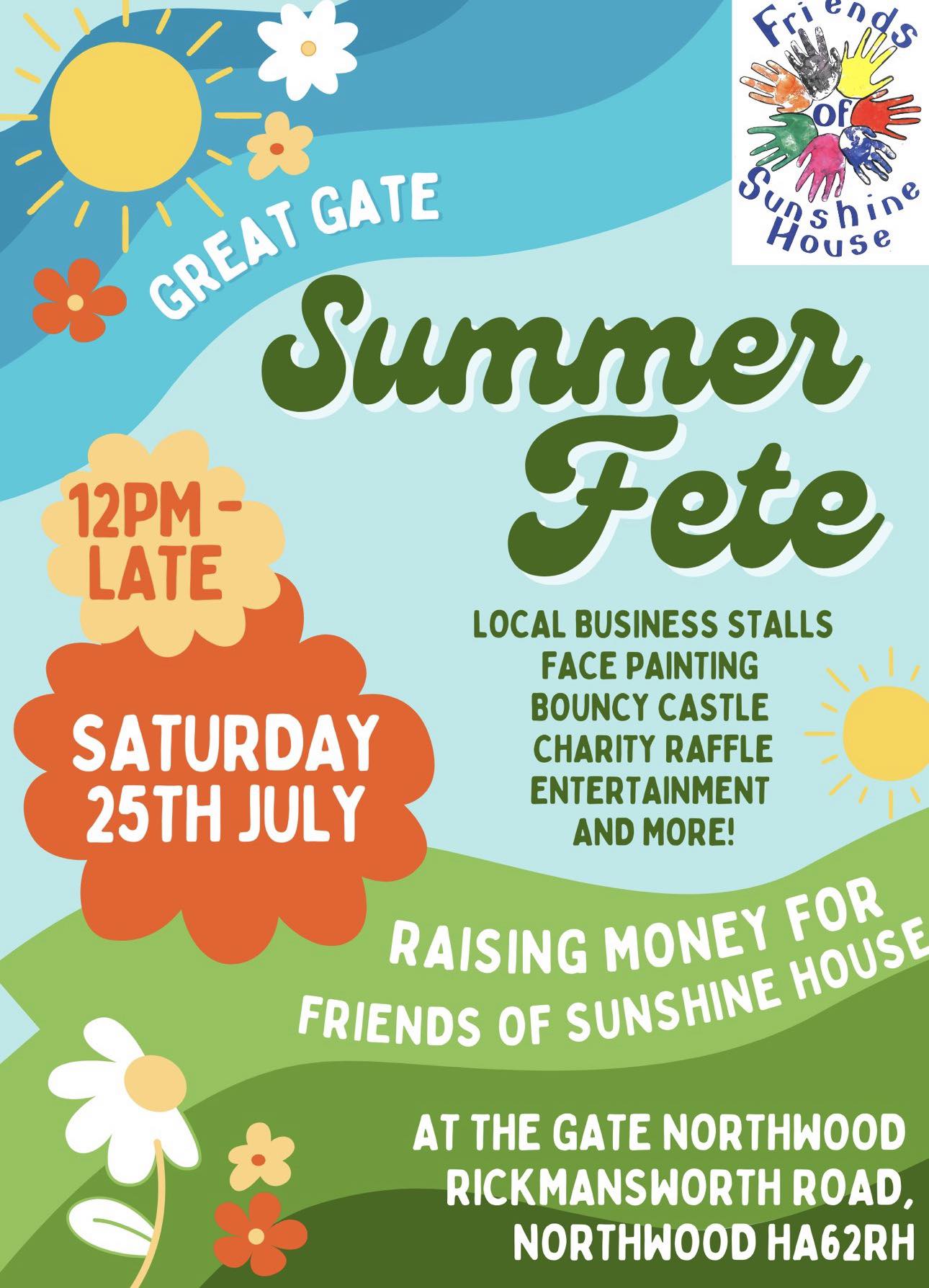Due to the success of our event last year we are holding our second annual charity Summer Fete at The Gate Northwood, on 25th July 2026 from 12 PM.